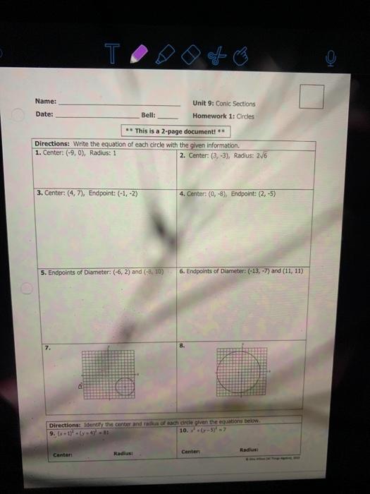 Solved Unit 9 Conic Sections Name Homework 1 Circles Chegg Com